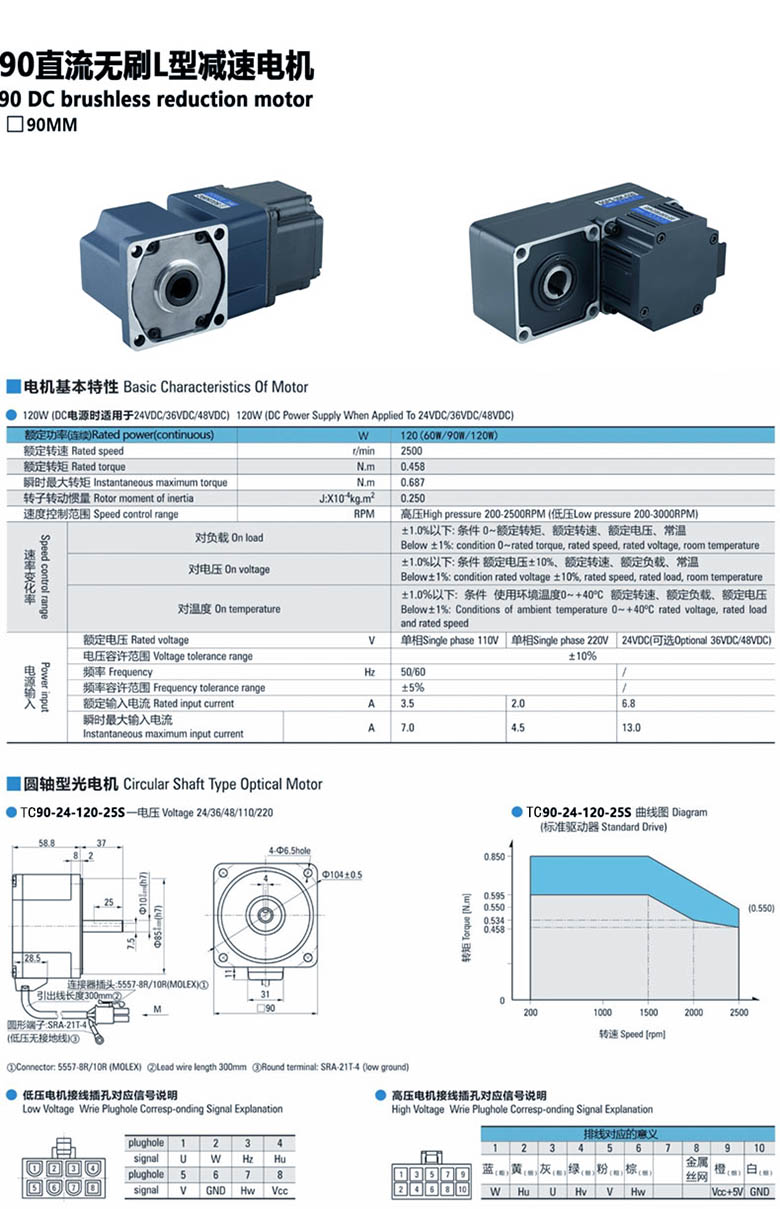 產(chǎn)品名稱:L型直流無刷減速電機90W-120W